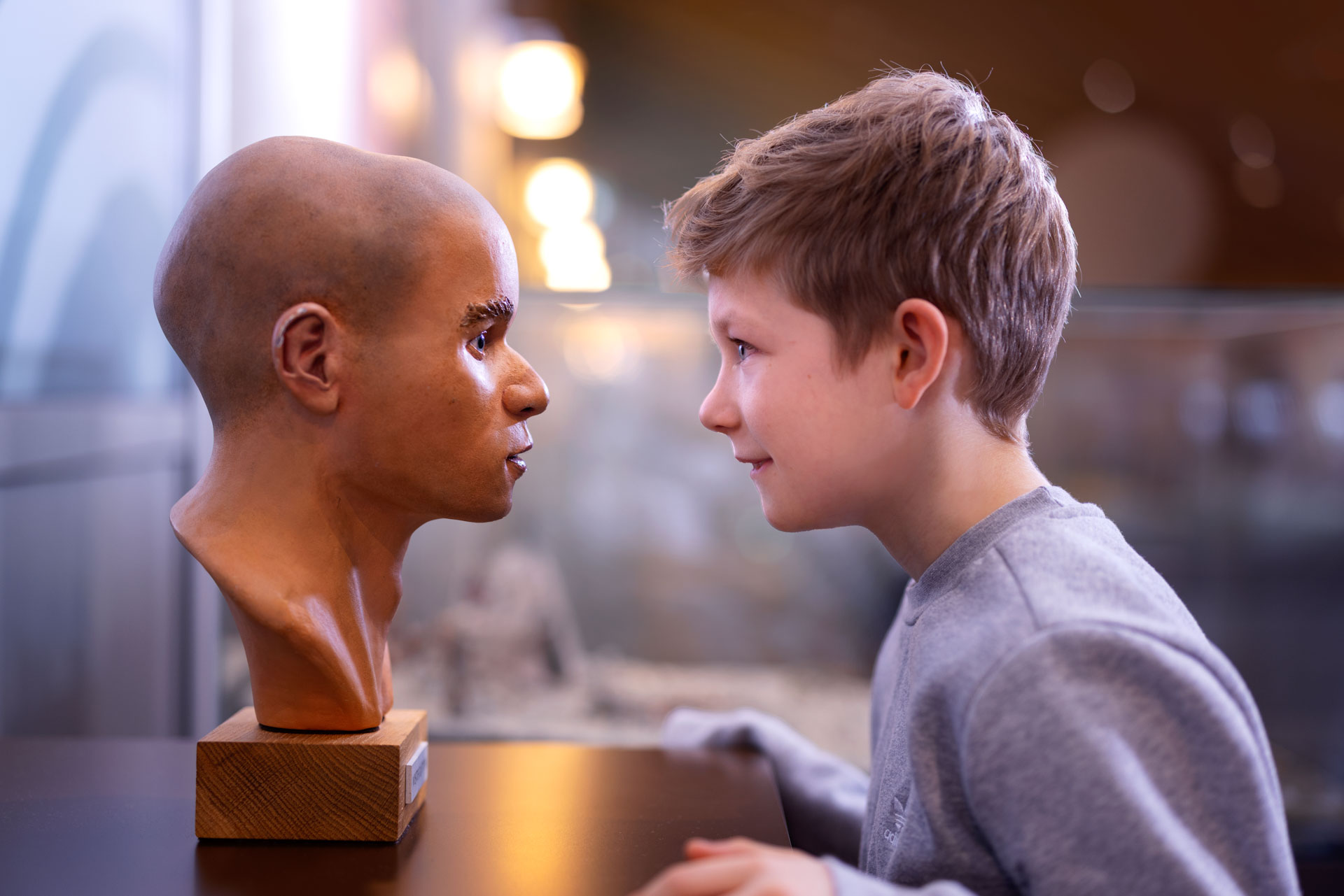 Forsker og arkeolog Astrid Nyland forklarer bakgrunnen for museets nye steinalderutstilling.